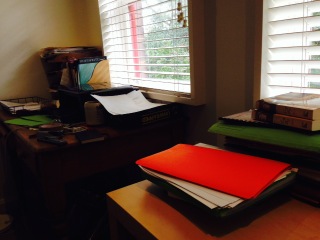 I work from home and currently my office is either the desk in the spare room, the kitchen table or the living room sofa. I move around like a lizard, seeking sun, heat and food throughout the day. My husband is a builder and he tells me that the garage he is building out the back will contain a studio for me. He gets a little irritated by my towers of books and papers.